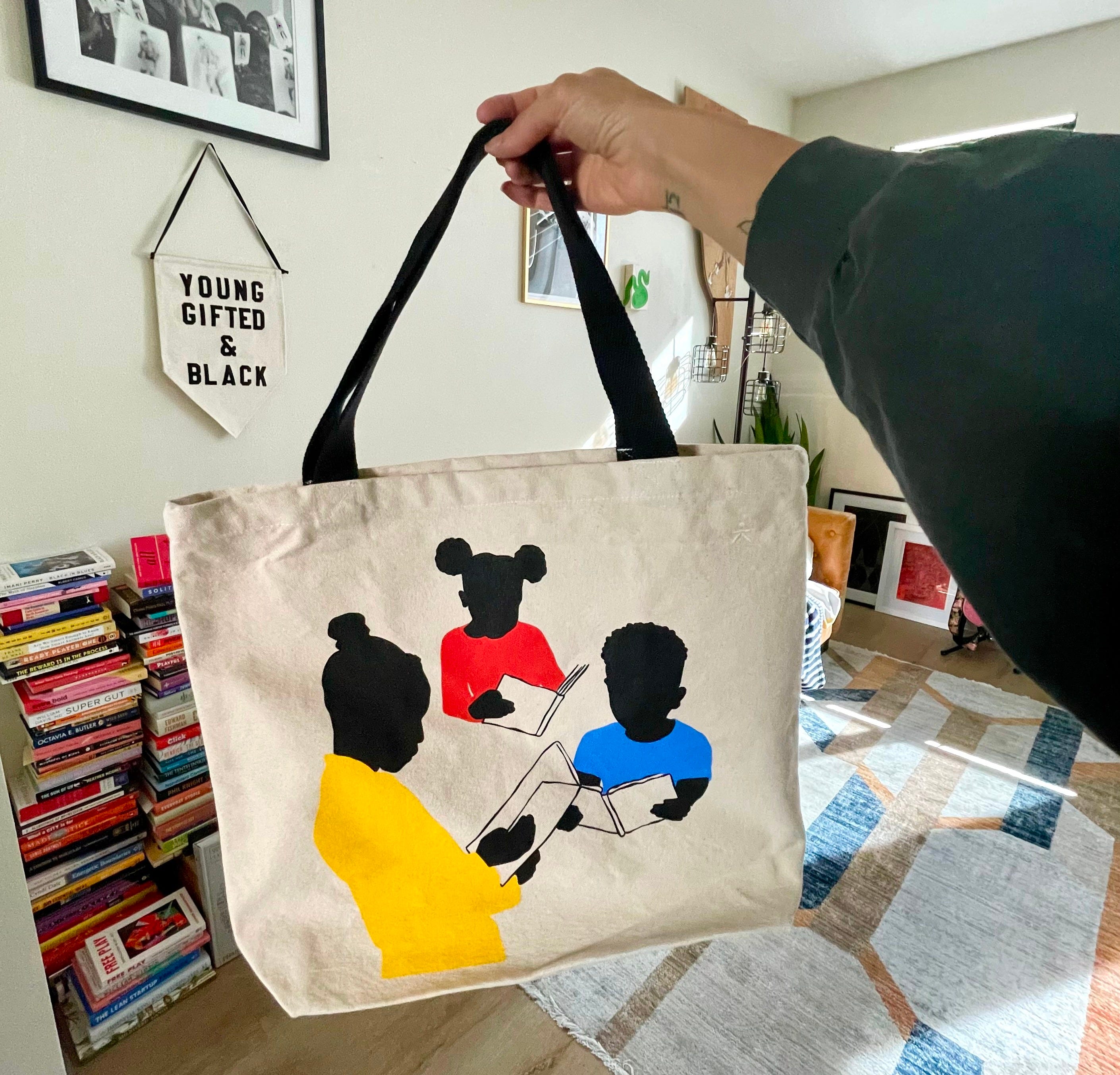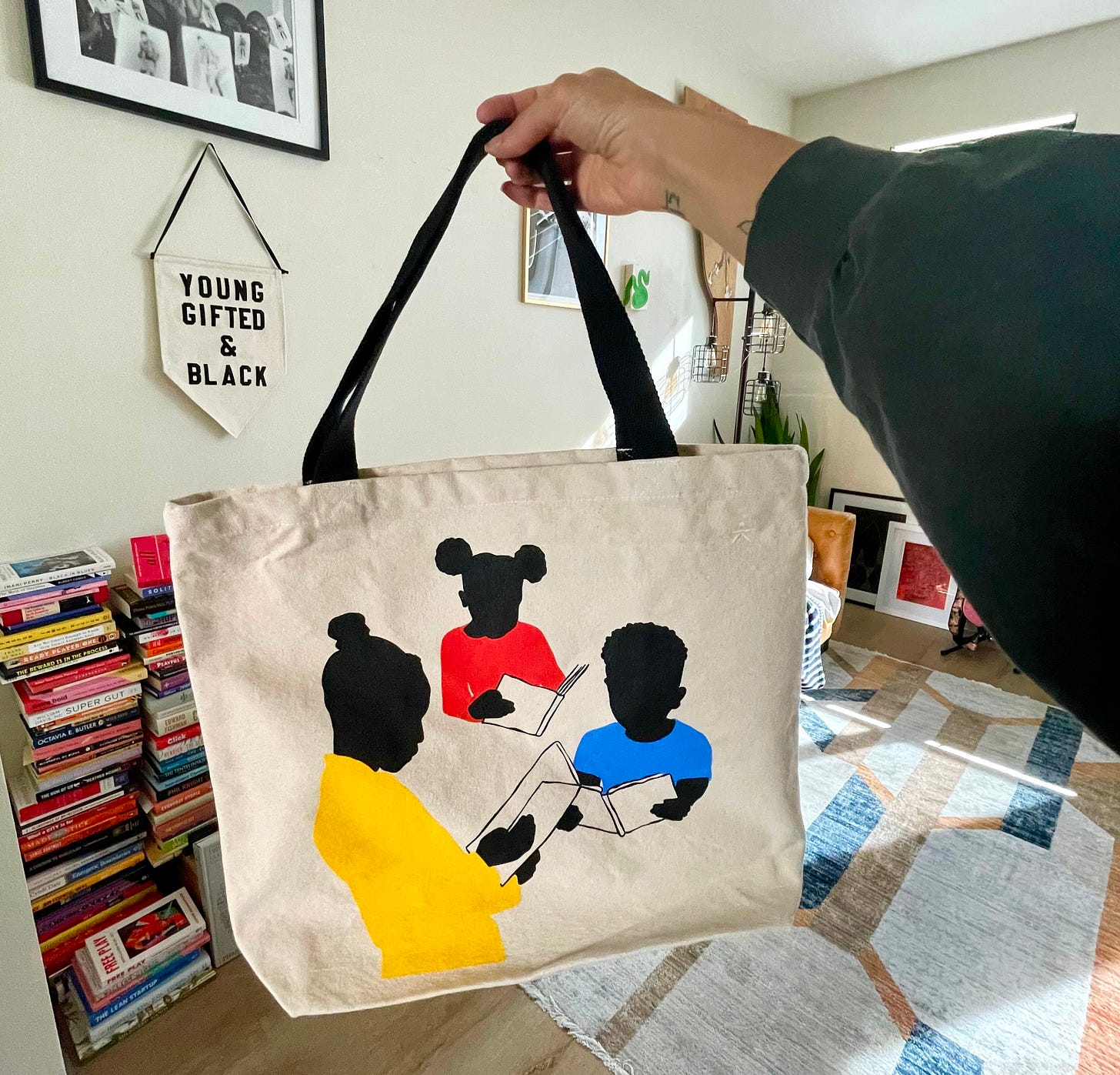 for Black History Month this year, I had the opportunity to design a tote as a gift for Anthropic’s Black employee resource group, Rhythm & Roots. not so fun fact: it used to be illegal for Black people to read. literacy is a form of liberation.