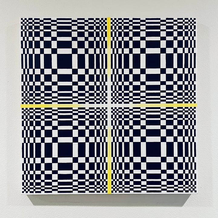 untitled | acrylic, ink on canvas | 24 x 24 in. | 2026 - this painting is inspired by a traditional Filipino weaving pattern called binakul. originating in the northern region of Ilocos/Abra, this form of indigenous op-art was used to ward off evil spirits. binakul represents the desire to connect more deeply to my Filipino ancestry.